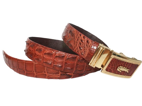 Thắt lưng cá sấu liền da bụng màu nâu đỏ TLCS-NĐ