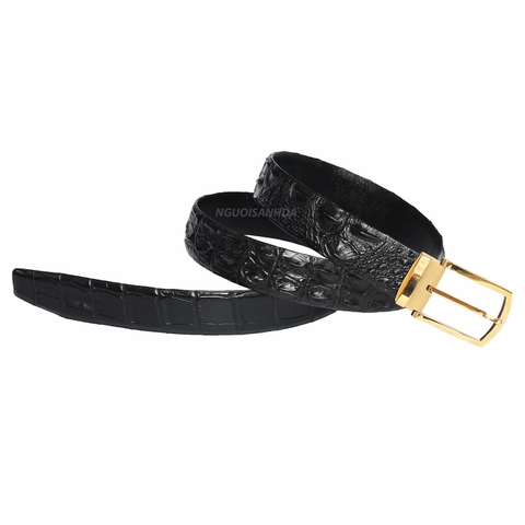 Thắt lưng da cá sấu liền nguyên con màu đen TLCS-462D