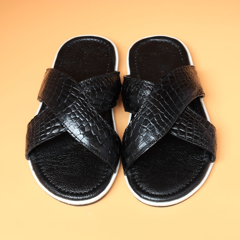 Dép da cá sấu quai ngang màu đen DCS717-D