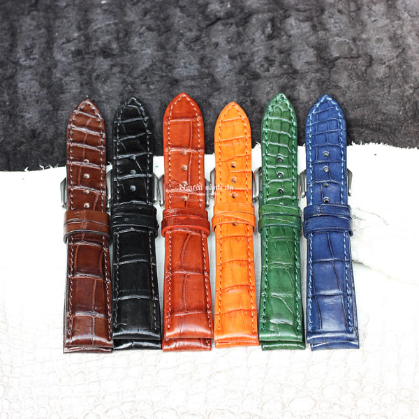 Dây đồng hồ có bề mặt lấy từ phần bụng của da cá sấu xịn. Dạng dây đồng hồ này có bề ngoài khá giống các mặt hàng giả da cá sấu trên thị trường nên cần một chút kinh nghiệm để phân biệt chúng.