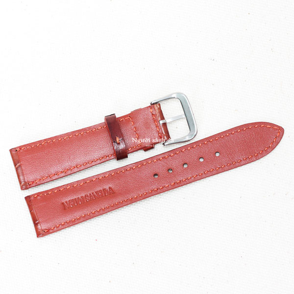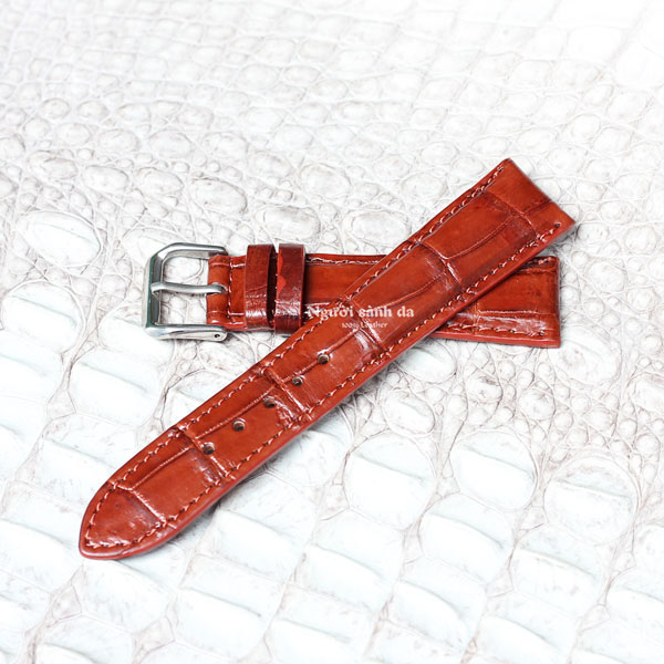 Dây đồng hồ da cá sấu vân bụng nâu đỏ DDH-606ND