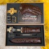 Dây đồng hồ có mặt ngoài từ da hông cá sấu có gai màu nâu đất, mặt đế từ da bò cao cấp. Chất liệu da cá sấu xịn cộng thêm tay nghề gia công lâu năm tạo nên một sản phẩm dây đồng hồ hoàn hảo. Bộ sản phẩm gồm: Dây + Hộp + Khóa + Chốt + Tool tháo lắp.