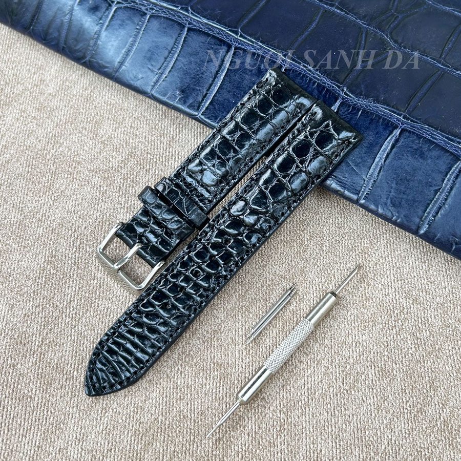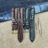 Dây đồng hồ da cá sấu da hông khóa kim.