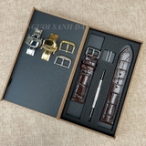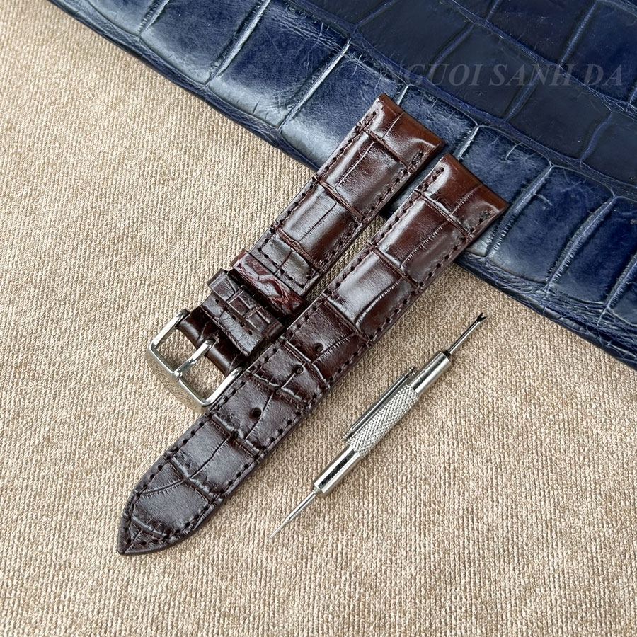 Dây đồng hồ da cá sấu vân bụng nâu đất DDH-606N