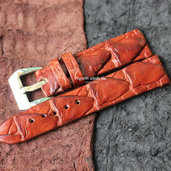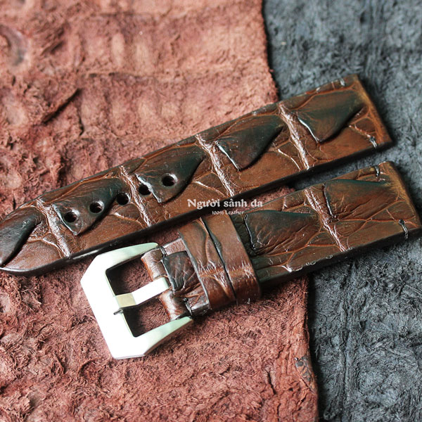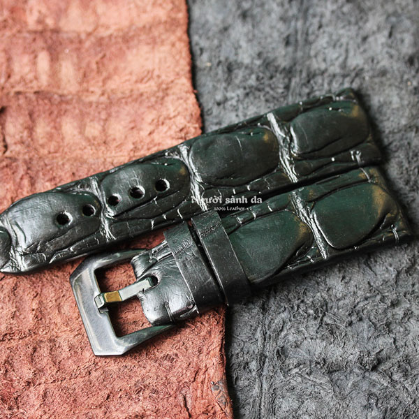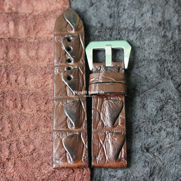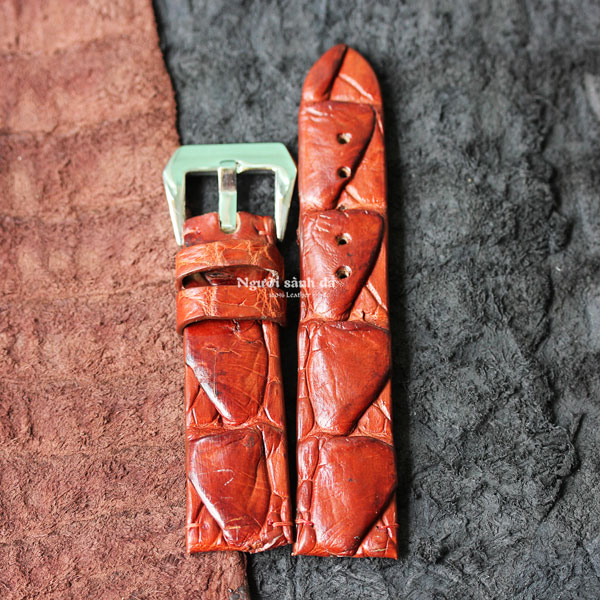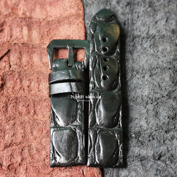 Dây đồng hồ làm từ phần nổi của da cá sấu. Bề mặt gồ ghề mang vẻ hầm hố, sử dụng khóa lớn chất liệu cao cấp tạo nên sự đẳng cấp. Size lớn từ 22mm-24mm