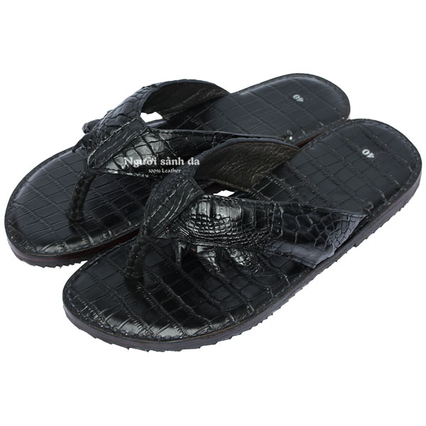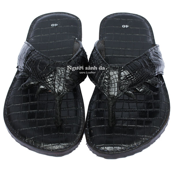 Dép kẹp móng da cá sấu màu đen DCS-707D