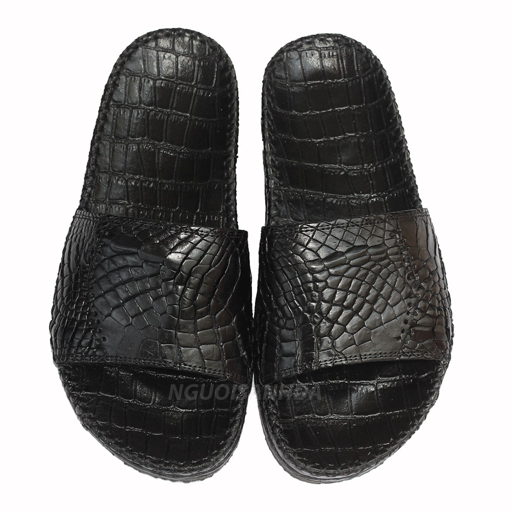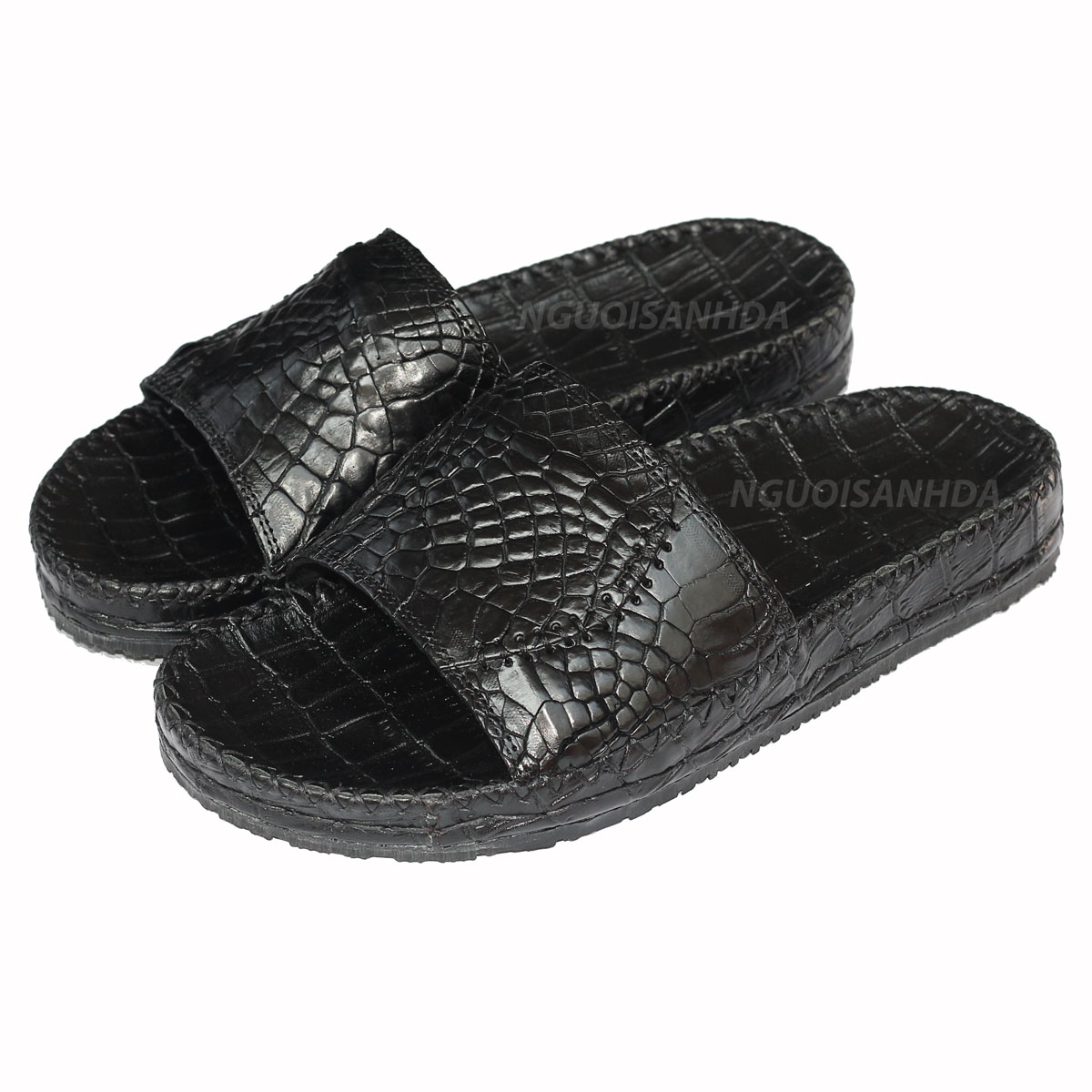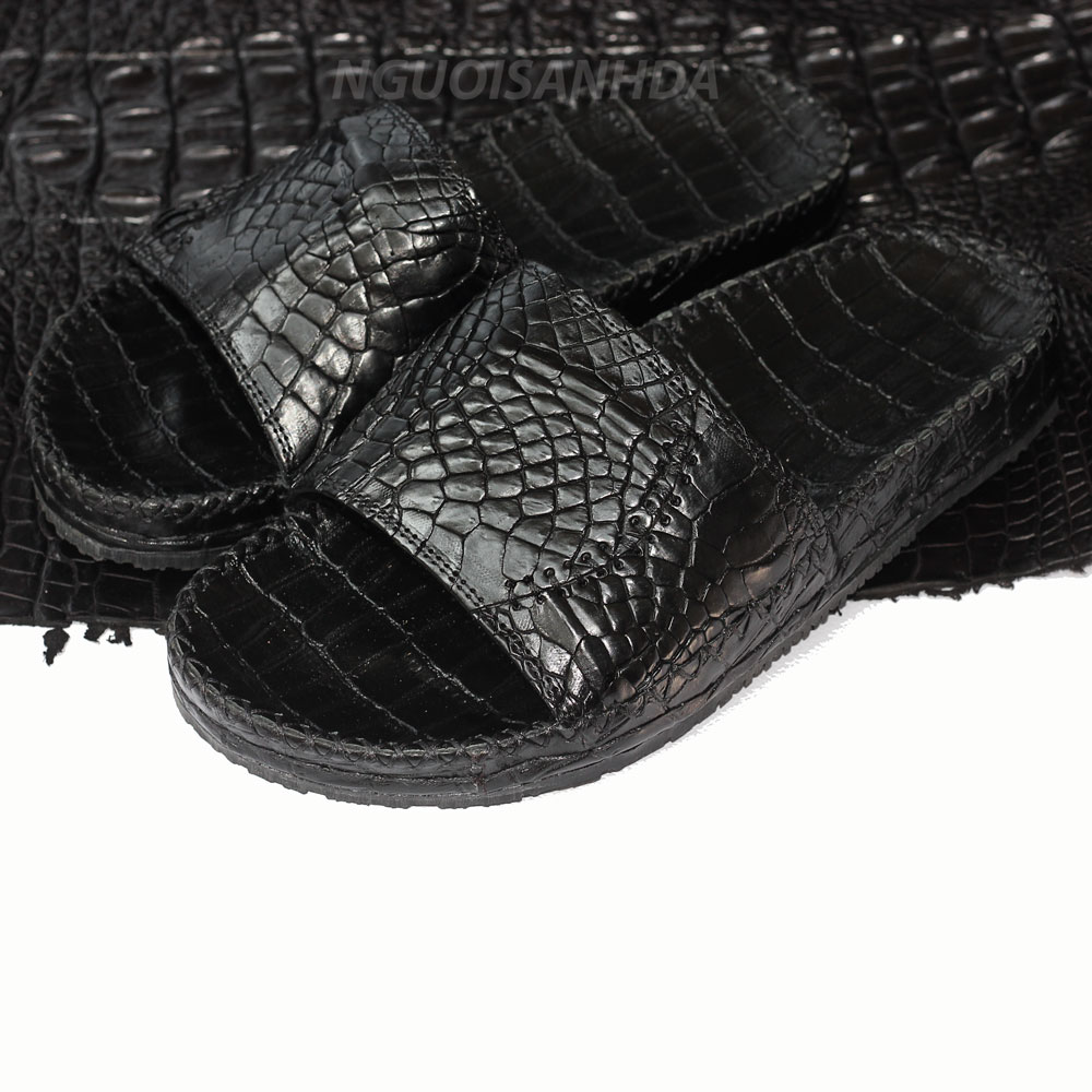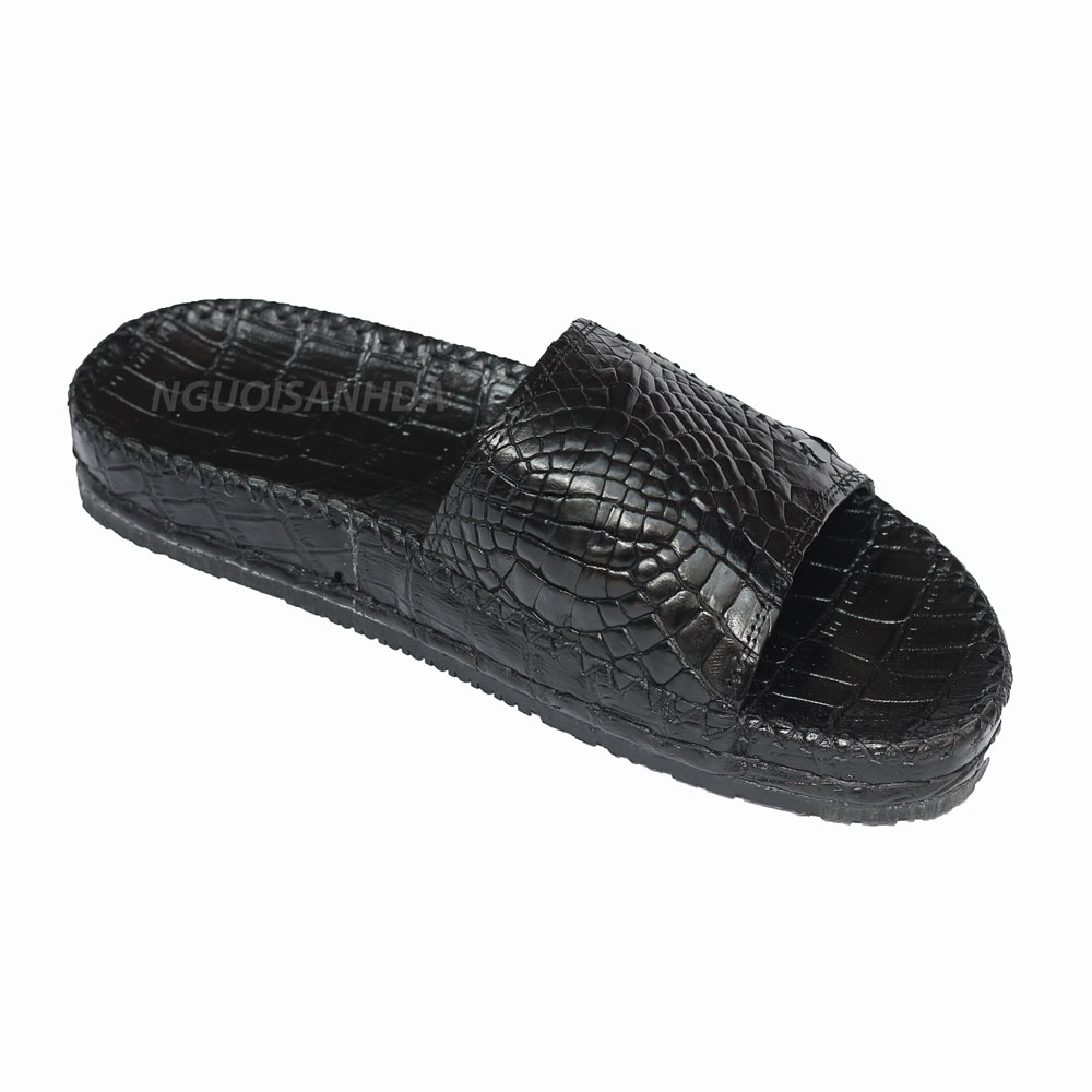 Dép da cá sấu quai ngang màu đen DCS717-D