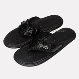 Dép kẹp da cá sấu gù gai màu đen DCS718-D