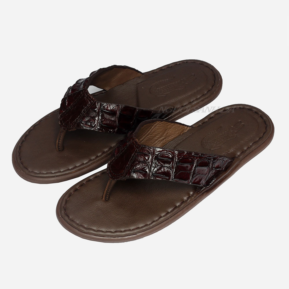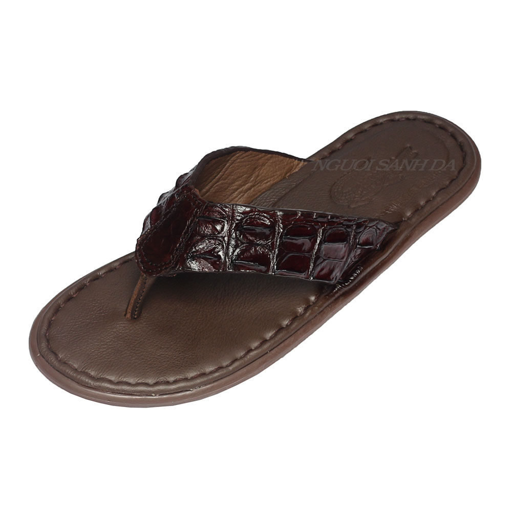Dép kẹp da cá sấu nam gù gai màu nâu DCS718-N