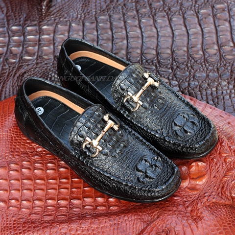 Giày lười da cá sấu thật màu đen GCS709-D