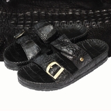 Chất liệu: Quai được làm từ phần da tay cá sấu lớn, phần đế được bọc lớp da bò dập vân tạo cảm giác êm chân khi đi.