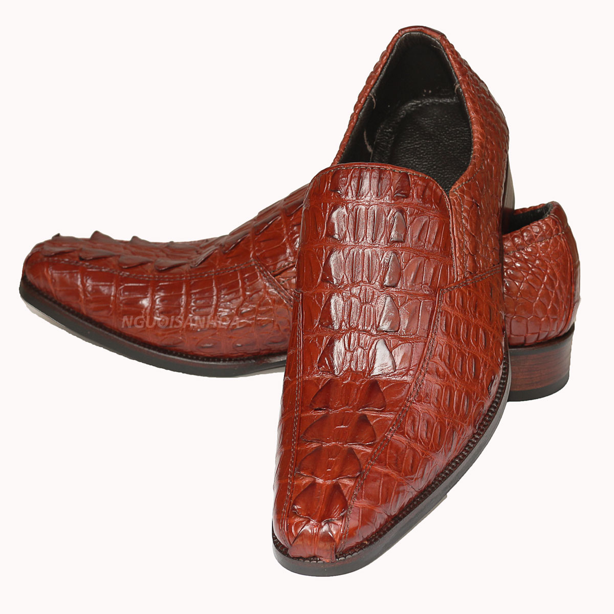 Giày tây da cá sấu thật màu nâu đỏ rượi