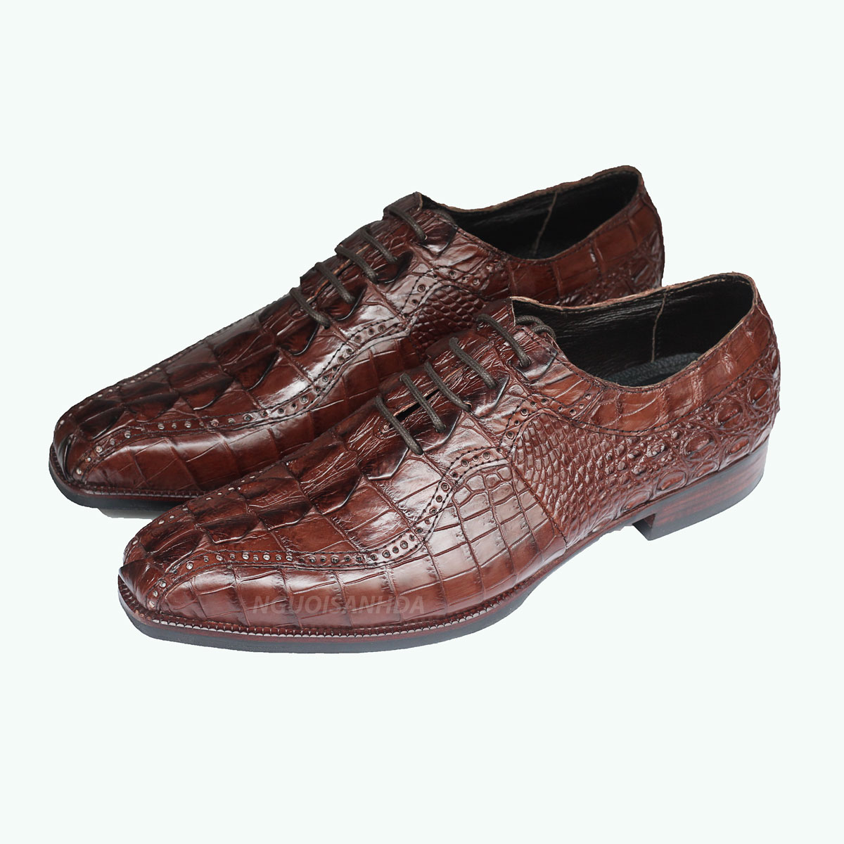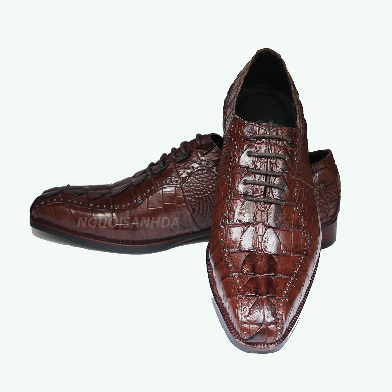 Giày tây nam da cá sấu buộc dây màu nâu GCS714_N