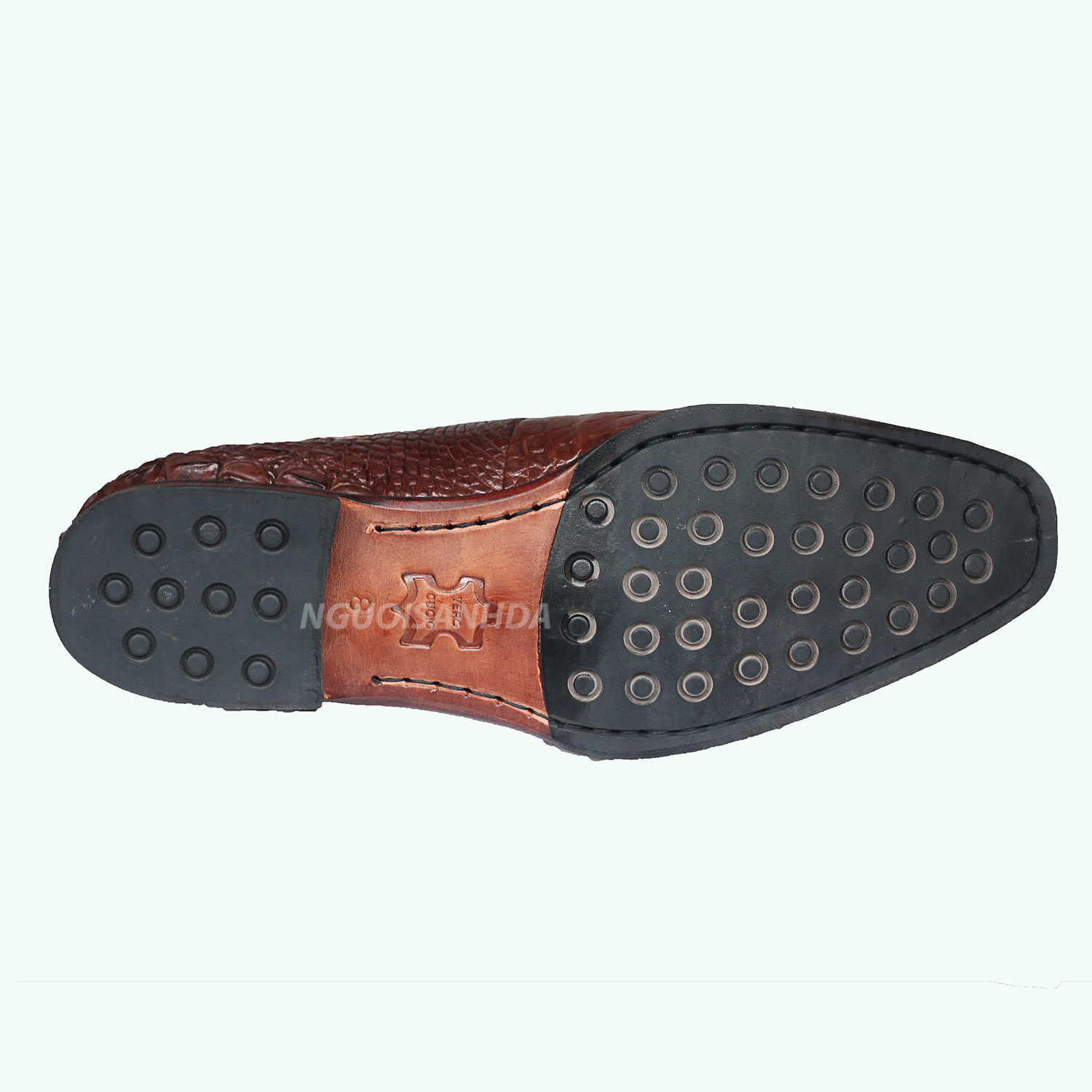 Giày tây nam da đuôi cá sấu mang vẻ sang trọng nhưng cũng không kém phần thanh lịch. Đế cao su ép da nhập khẩu đảm bảo cho độ bền gần như vô hạn. Màu nâu là gam giúp bạn nổi bật hơn trong đám đông.