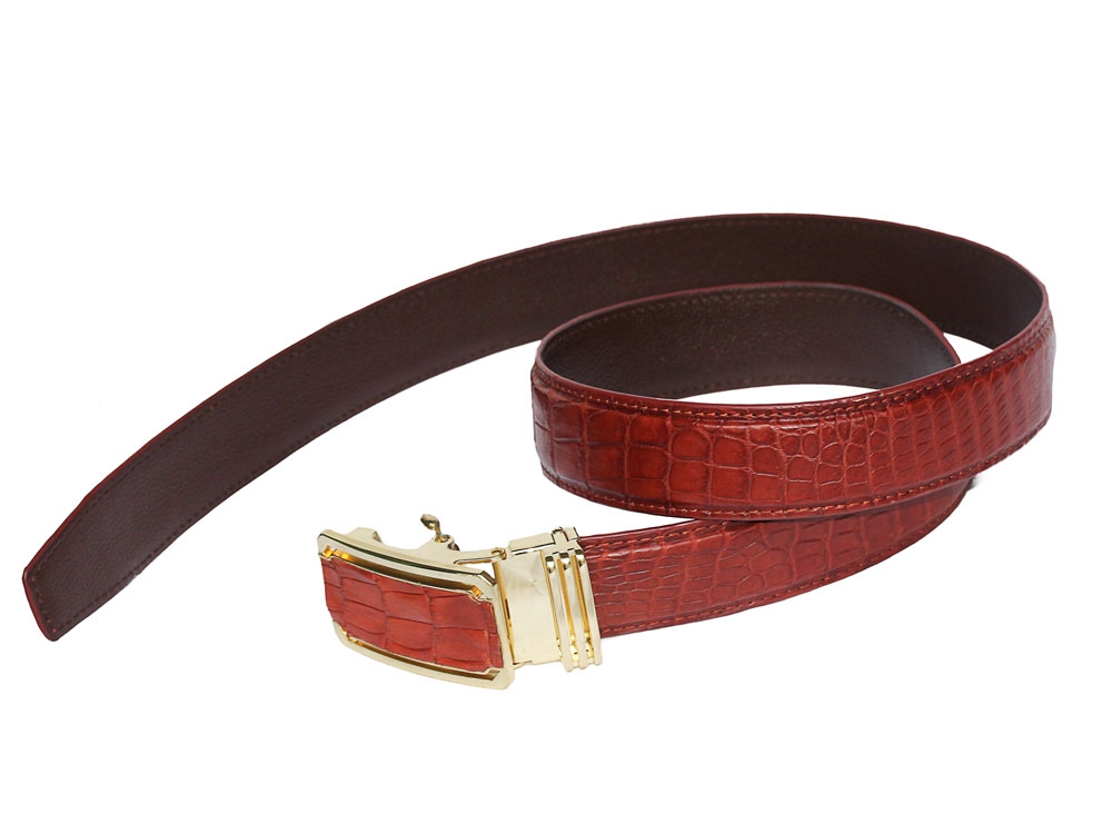 Thắt lưng cá sấu liền da bụng màu nâu đỏ TLCS-NĐ