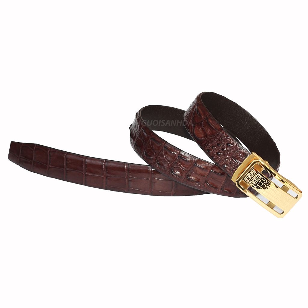 Thắt lưng da cá sấu NSD màu nâu đất khóa thép tự động cao cấp