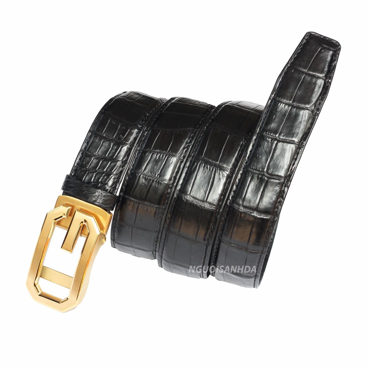 Thắt lưng da cá sấu nguyên con khóa tặng tự động thép không gỉ. Sử dụng phần da bụng cá sấu chạy dọc bụng. Kiểu thắt lưng cá sấu sang trọng, lịch sự phù hợp đồ công sở, hội nghị,..