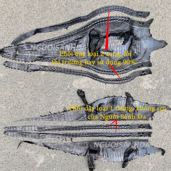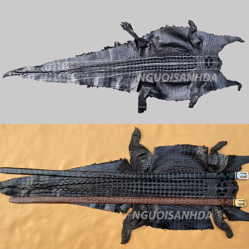 - Chất liệu: da cá sấu liền chạy từ đầu đến đuôi lấy phần gai chính giữa. Da cá sấu loại 1 không lỗi, sẹo, bề mặt da căng bóng, gai vừa vặn, hài hòa.