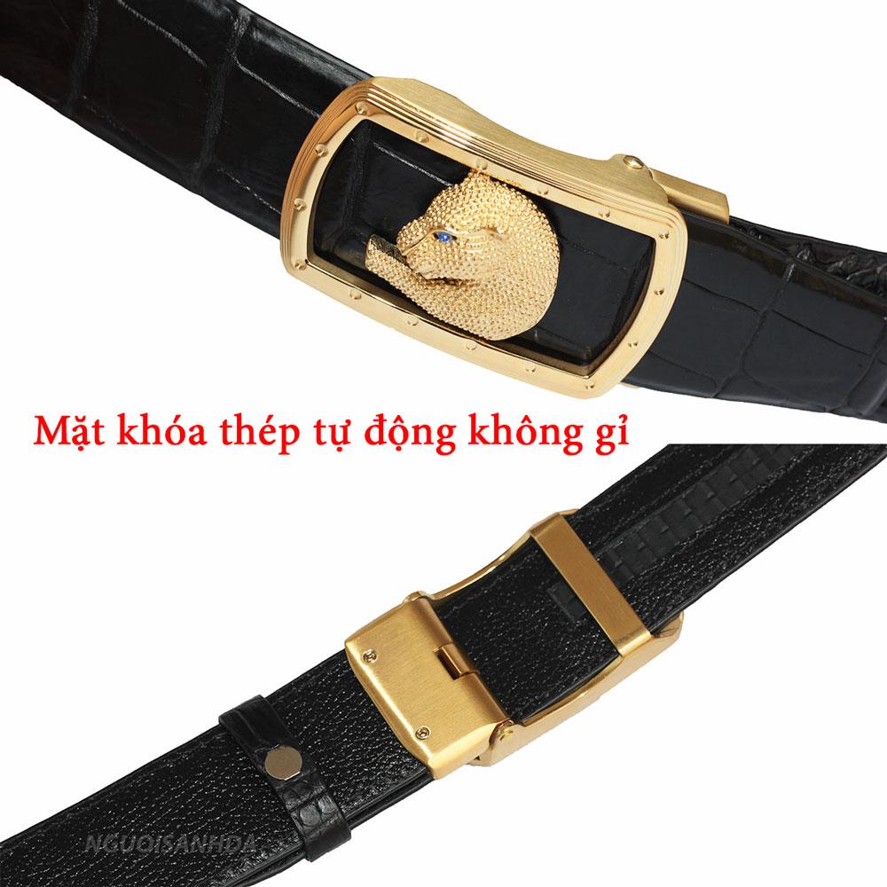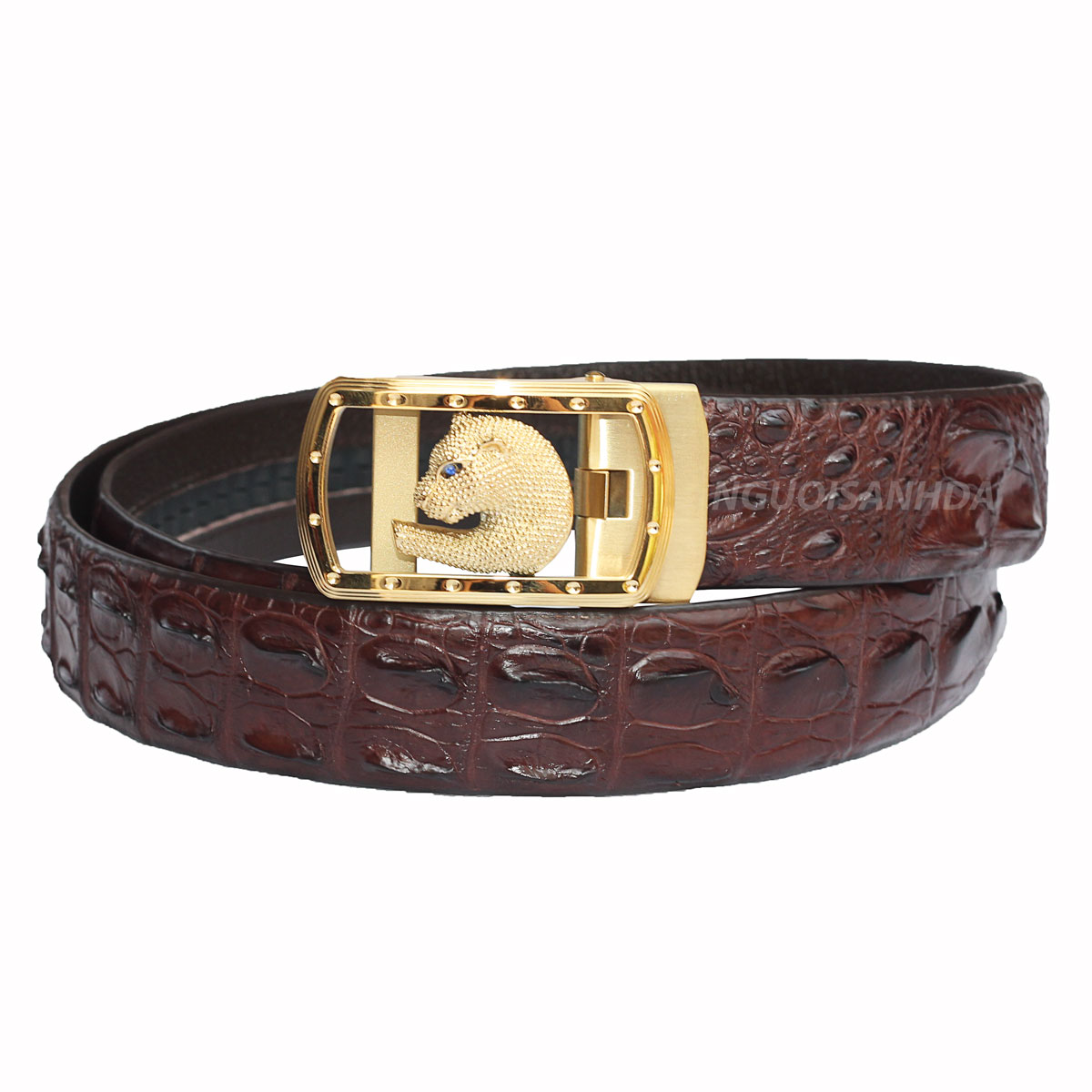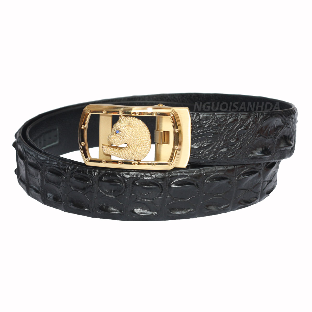 Thắt lưng da cá sấu nguyên con khóa thép tự động không gỉ TLCS477