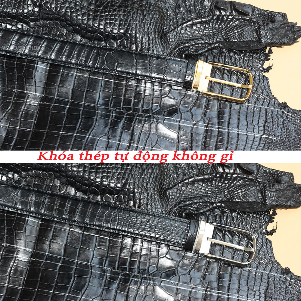 Thắt lưng da cá sấu liền bụng khóa khóa kim thép không gỉ TLCS-480