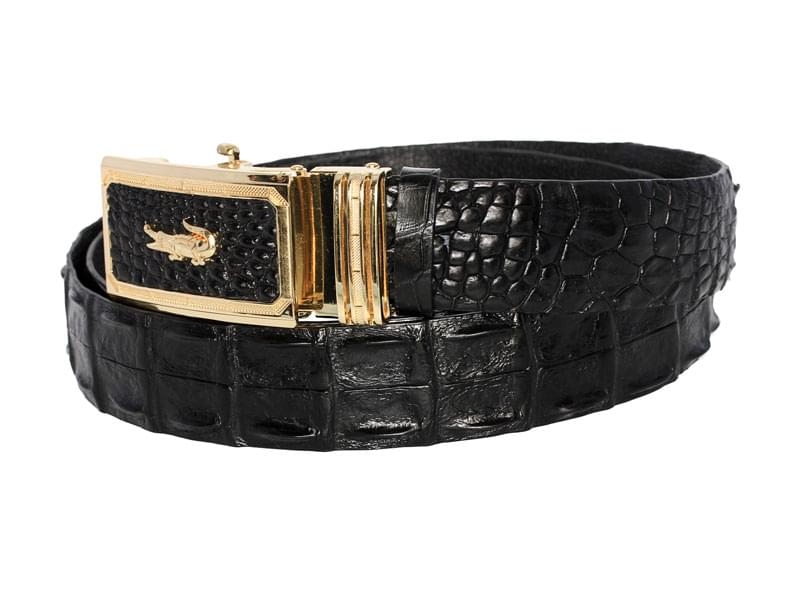Thắt lưng da cá sấu màu đen là tông màu phổ biến của da cá sấu. Loại thắt lưng có 2 hàng gai như vậy trên 1 con cá sấu chỉ làm được một sợi duy nhất phần chính giữa sống lưng. Mà để kiếm được sợi dây có gai đều đẹp lại còn hiếm hơn. Nhiều khi gặp cá sấu bị sẹo trên lưng thì sẽ không lấy được sợi nào.