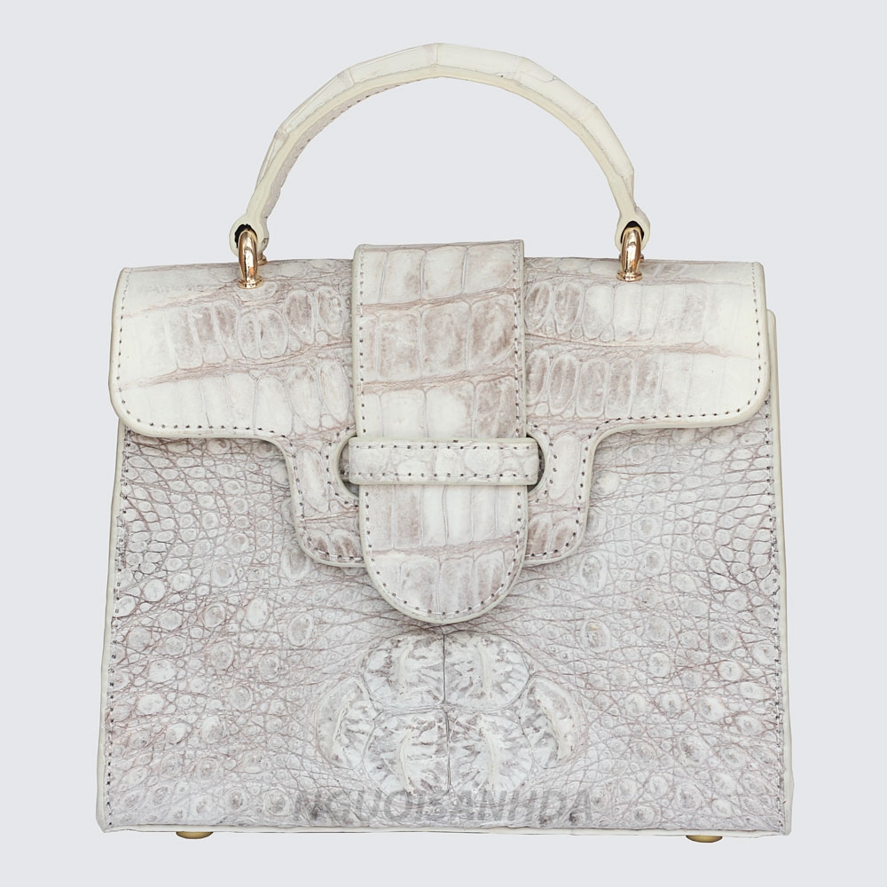 Túi xách da cá sấu thật màu trắng bạch tạng không bao giờ lo lỗi mốt. Kiểu túi trẻ trung, thanh lịch có thể sử dụng cho công việc hoặc thời trang.
