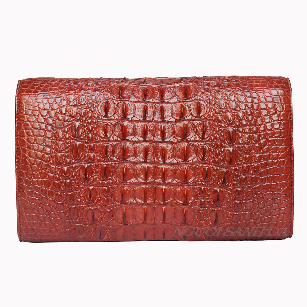 Ví cầm tay da cá sấu thật gù gai màu nâu đỏ