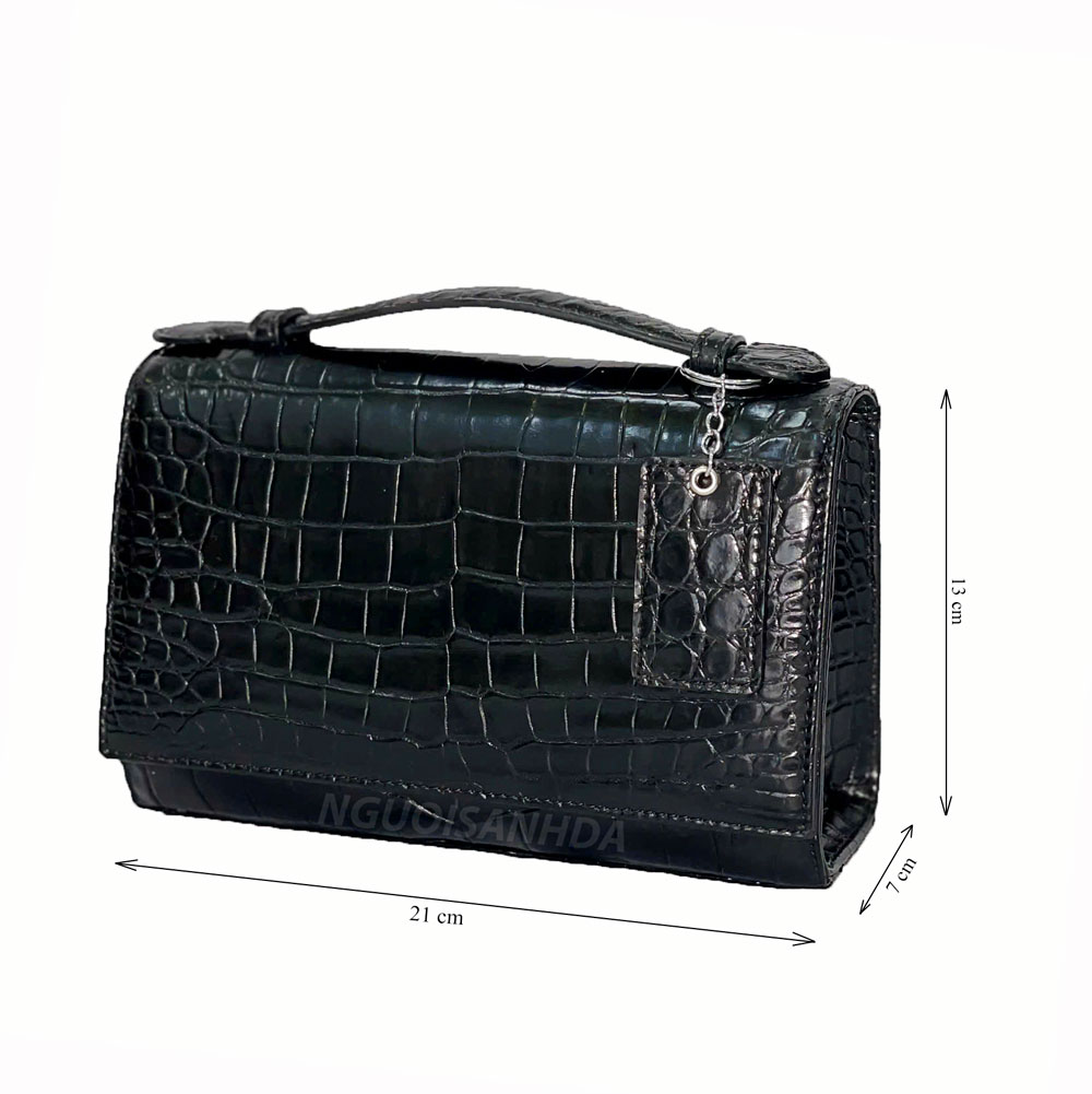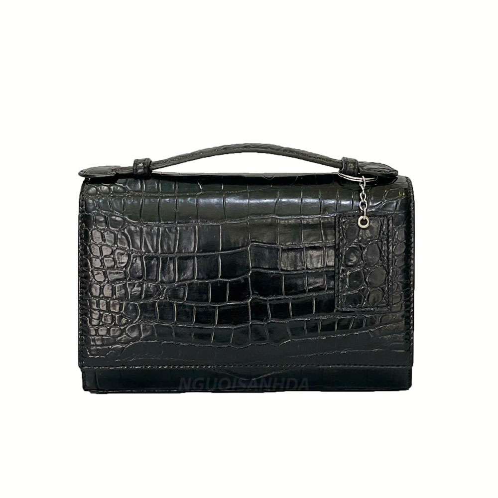 Túi xách da bung cá sấu màu đen thiết kế kiểu dáng đơn giản, thanh lịch, trẻ trung, dễ dàng phối đồ và phù hợp trong nhiều hoàn cảnh.