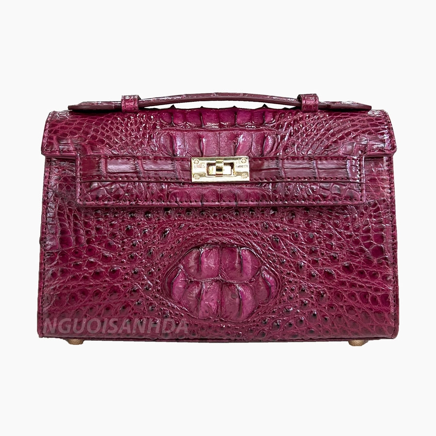 Túi xách da cá sấu size 22 thương hiệu NSD được làm từ phần gù và gai lưng cá sấu. Thiết kế sang trọng kết hợp với khóa xoay kim loại cao cấp và quai xách tay thanh lịch phù hợp với đi tiệc, dạo phố hoặc làm điểm nhấn nổi bật trong set đồ hàng ngày.