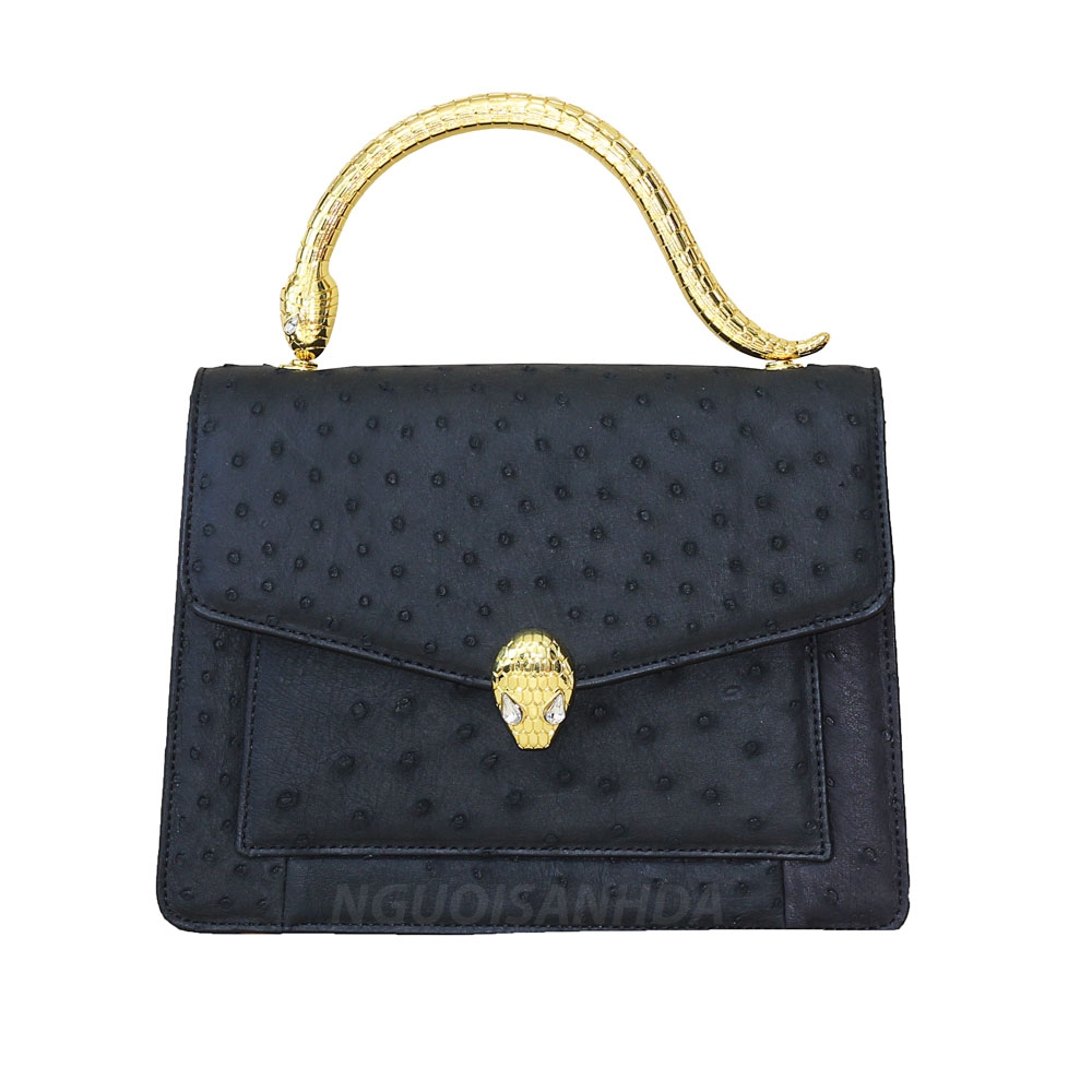 Túi xách nữ da đà điểu quai rắn màu đen TDD-201D