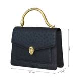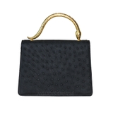 Túi xách nữ da đà điểu màu đen được thiết kế theo kiểu dáng nhẹ nhàng và tinh tế. Điểm nhấn tạo ra sự nổi bật cho mẫu túi là phần tay cầm là hình con rắn với đường cong mềm mại.