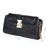 Mẫu túi xách nữ da cá sấu thiết kế nhỏ gọn, thanh lịch. Kiểu dáng trẻ trung phù hợp với nhiều trang phục của bạn. Túi có nhiều ngăn nhỏ để đựng thẻ và giấy tờ. Phần dây đeo có thể tháo rời giúp bạn biến chiếc túi xách thành chiếc ví cầm tay tiện lợi.