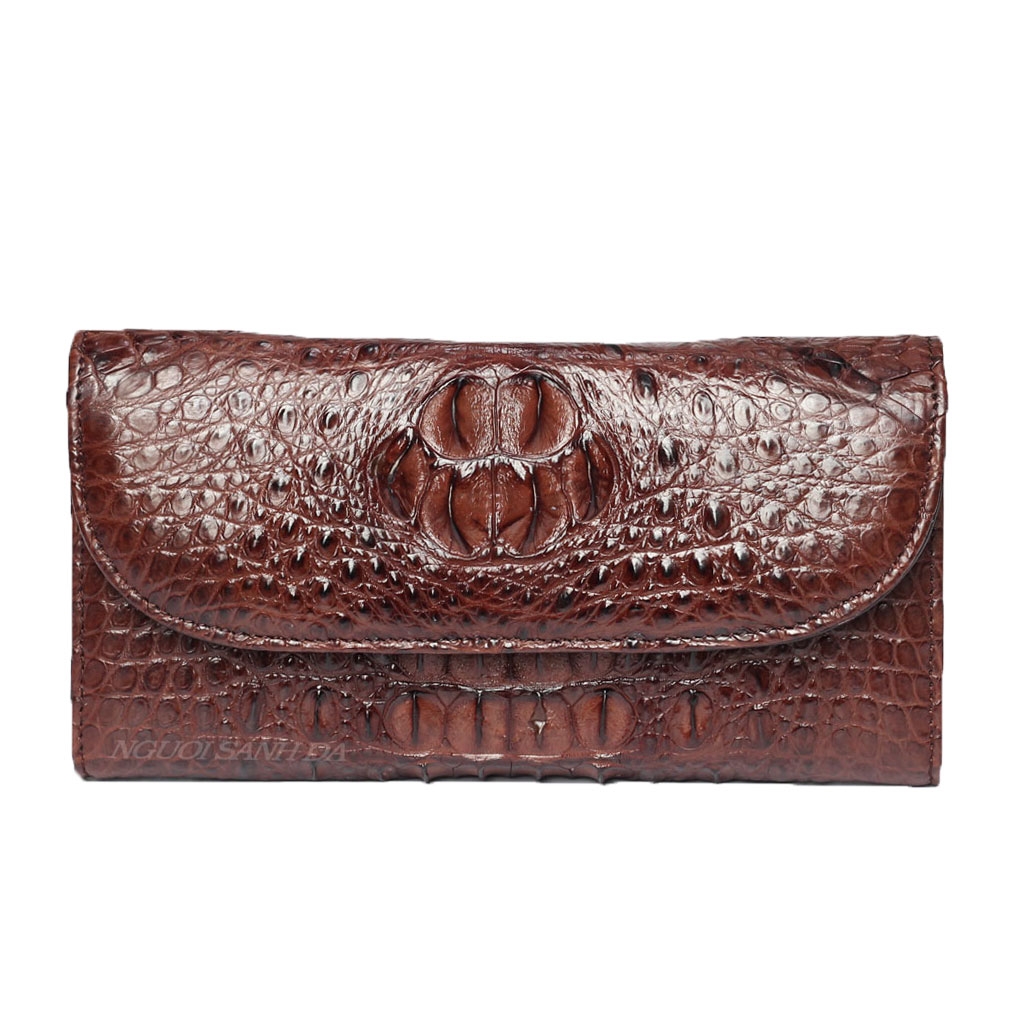 Ví cầm tay da cá sấu gù gai màu nâu