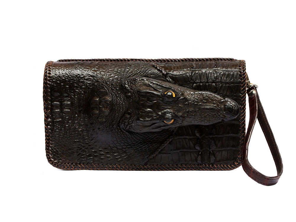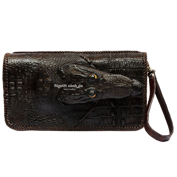 Ví cầm tay nam còn nguyên đầu da cá sấu thuộc loại hầm hố. Tuy nhiên chúng vẫn mang nét lịch sự chứ không hề trẻ trâu một chút nào. Đầu cá sấu còn nhỏ kết hợp các đường đan viền thủ công tạo nên tổng thể 1 chiếc ví lịch sự mà vẫn toát lên được hết các đường nét của cá sấu. Một chàng trai mạnh mẽ luôn muốn vật dụng bên cạnh mình cũng mạnh mẽ theo. Không chỉ vậy, cá sấu nguyên con mang bên mình như một biểu tượng của sự may mắn và được bảo vệ. Sử dụng ví tốt nhất cho các buổi tiệc mang tính giải trí cao như họp lớp, đám cưới, gặp bạn bè, du lịch,...