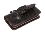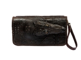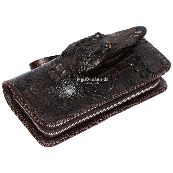 Ví cầm tay nam sử dụng nguyên con da cá sấu còn cả đầu. Dạng ví 2 khuôn thụt đan viền da bò thủ công có quai cầm tay cũng bằng da cá sấu