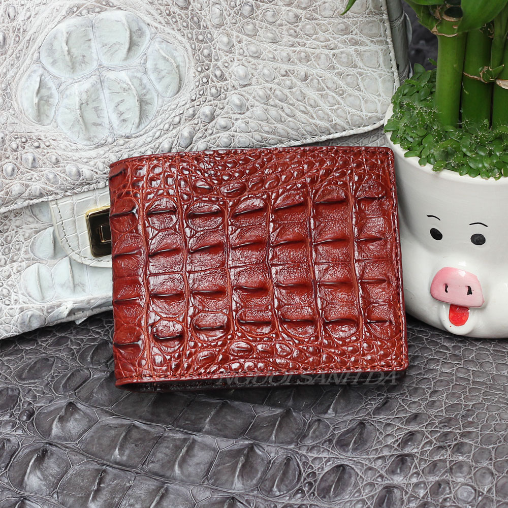 Ví da cá sấu thật 2 mặt màu nâu đỏ