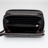 Ví nữ 2 dây kéo da cá sấu màu đen